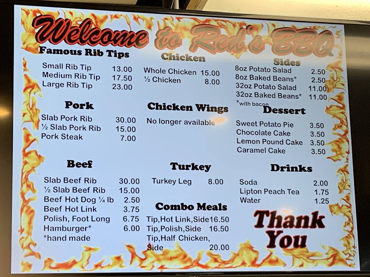 Introducing the menu at Red's The One And Only BBQ, a true gem located in Ferguson, MO. With a focus on classic barbecue that hits all the right notes, this establishment promises an unforgettable culinary experience. Their offerings include mouthwatering pork rib tips and pork steaks, seasoned to perfection and sure to satisfy any craving. Portions are generous, ideal for sharing or indulging solo.
